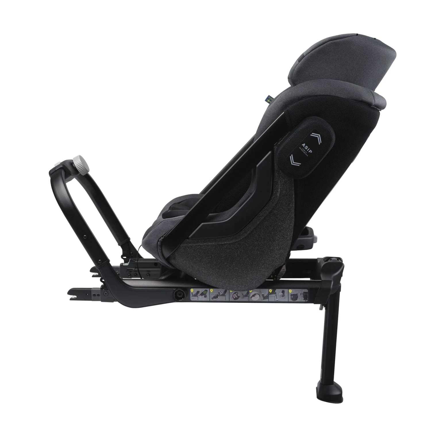 The Axkid One 2 + features sliding seat technology, allowing the front seat passengers additional space by pushing the seat back towards the backseat – all made possible by the seat’s mounted rails that allow the seat to be adjusted back and forth for up to 30cm. For older children, the protective frame technology can act as a handle so they may easily climb in and out of the seat themselves. The One 2 +’s oversize design of the anti-rotation bar means that there is extra legroom so they can travel comfortably all the way to the maximum age.Â