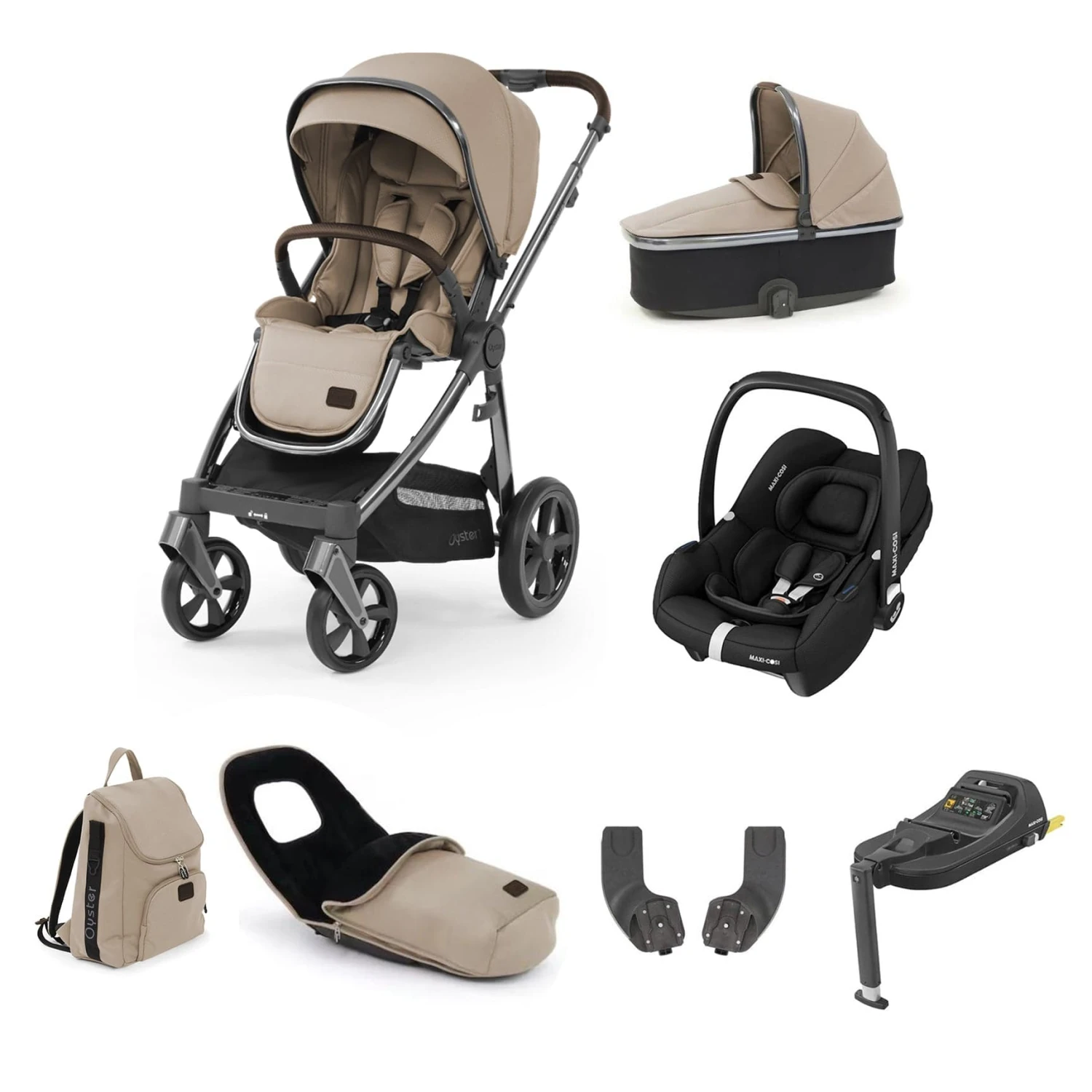 Whether travelling by car or out for a walk this exciting 7-piece Travel System bundle provides you with everything you need – The Oyster Pushchair, matching Carrycot, Footmuff and Changing Bag in addition to the Car Seat of your choice and its matching Car Seat Adaptors and 360 Base for seamless travel every time. Choose between the Babystyle Capsule Car Seat & Duofix Base, Maxi-Cosi CabrioFix i-Size Car Seat & CabrioFix i-Size Base, Maxi Cosi Pebble 360 Car Seat & Family Fix 360 Isofix Base or the Cybex Cloud Z2 i-Size Car Seat & Z2 Base.