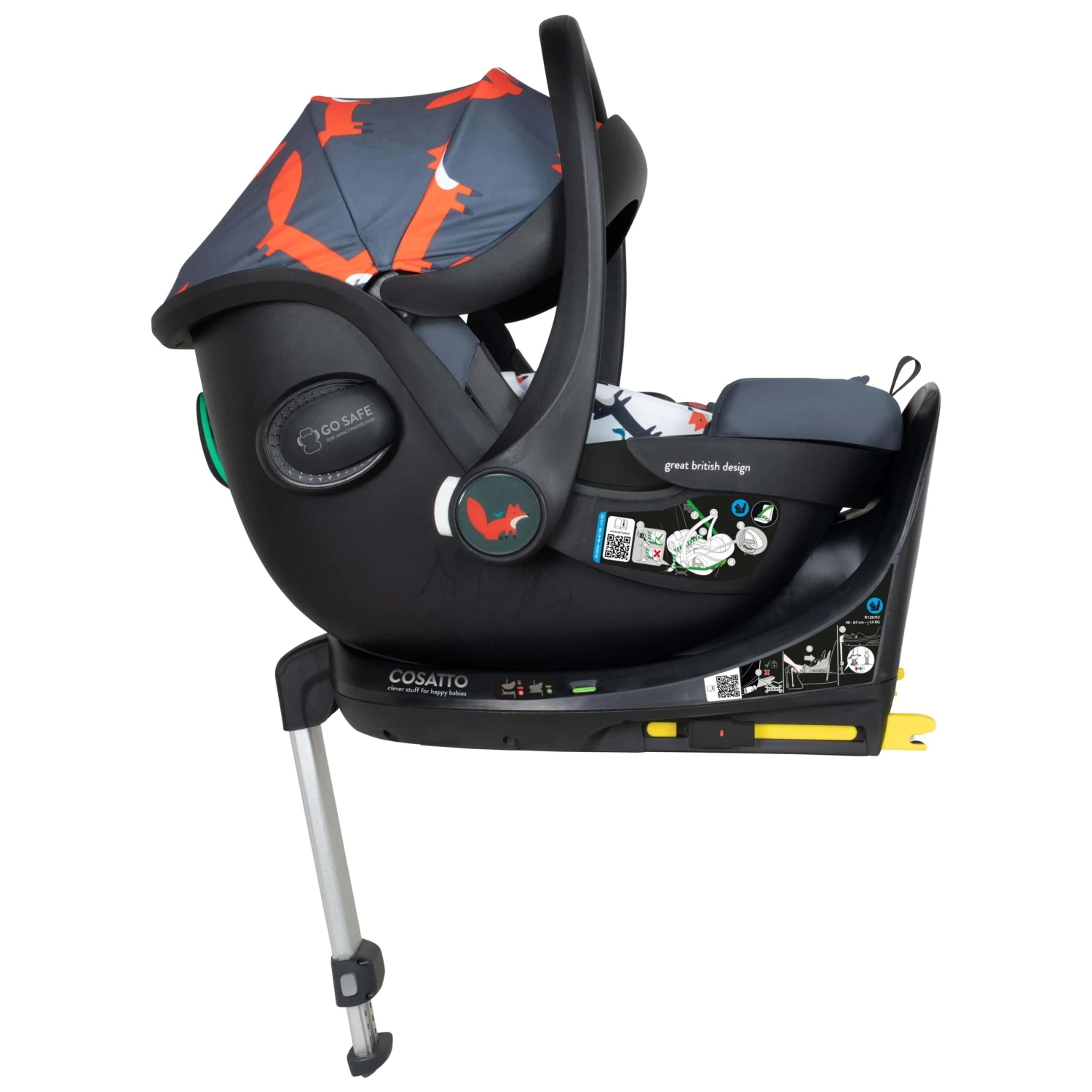 Cosatto Acorn i-Size Car Seat Charcoal Mister Fox is the newest addition to the cosatto collection. Not only will it feature all the latest safety innovations it will brighten your day with cosattos famous eye catching design. As well as its Eco- conscious design as the Acorn i-Size Infant carrier uses fabric made from recycled bottles with 13 plastic bottles in every Car Seat.