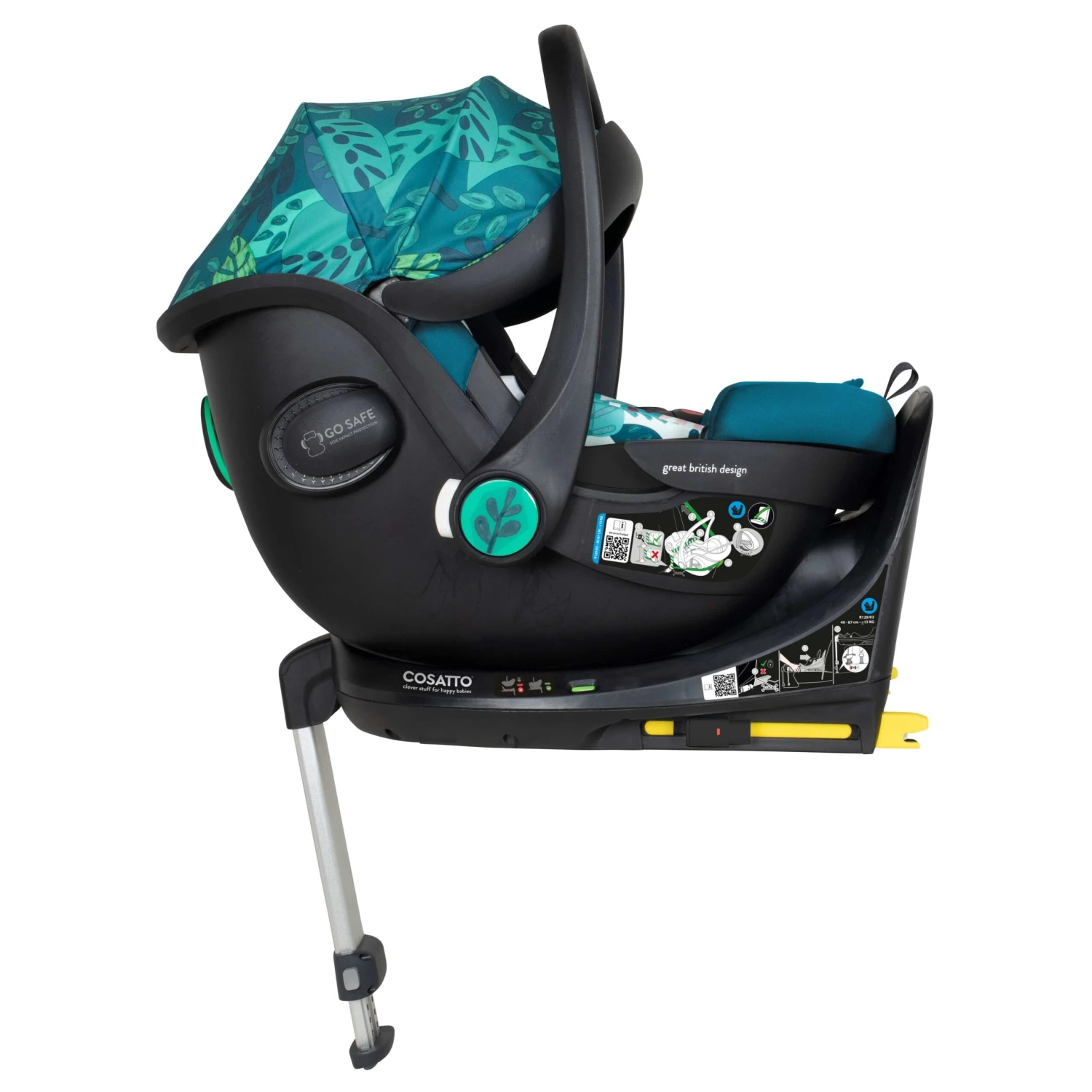 Cosatto Acorn i-Size Car Seat Midnight Jungle is the newest addition to the cosatto collection. Not only will it feature all the latest safety innovations it will brighten your day with cosattos famous eye catching design. As well as its Eco- conscious design as the Acorn i-Size Infant carrier uses fabric made from recycled bottles with 13 plastic bottles in every Car Seat.