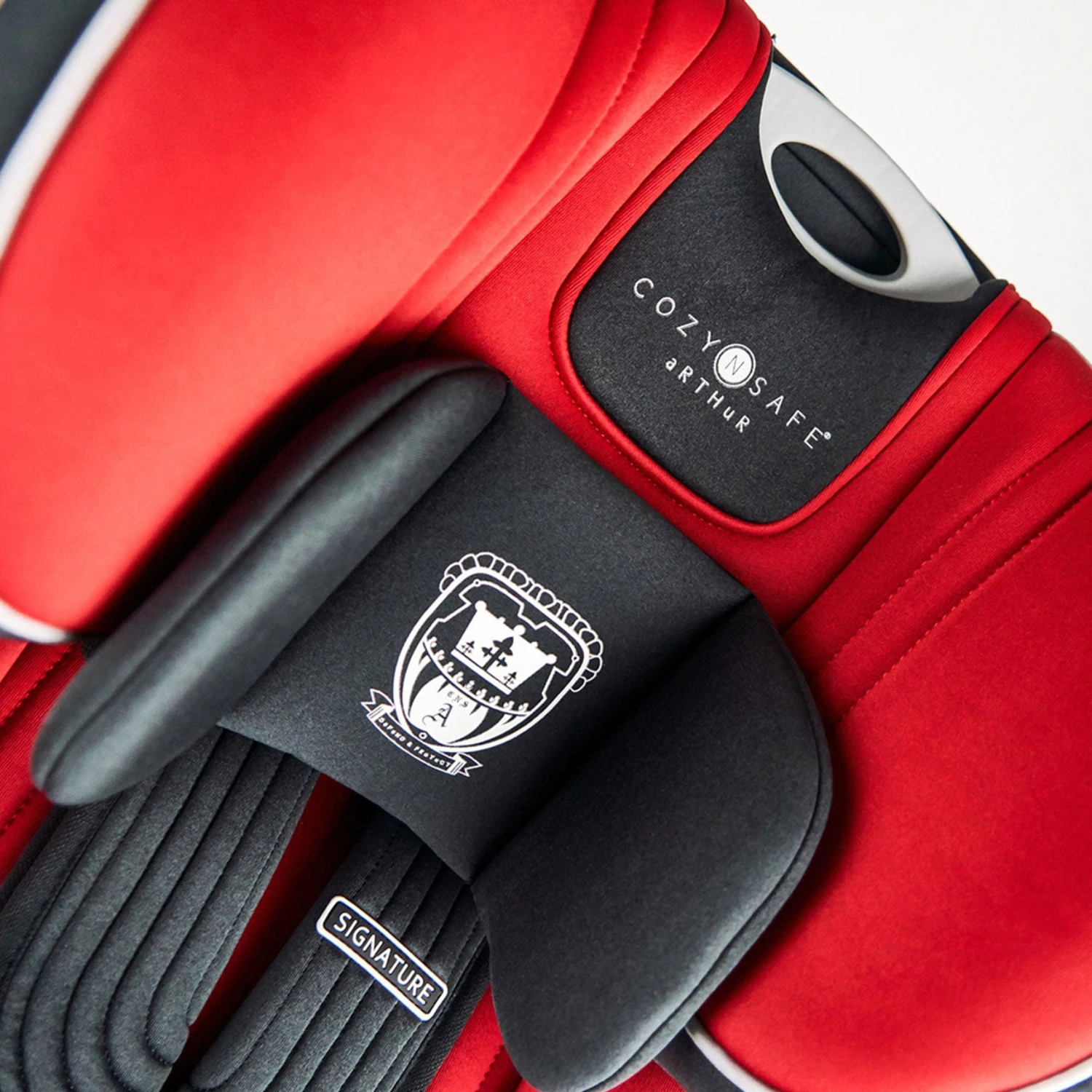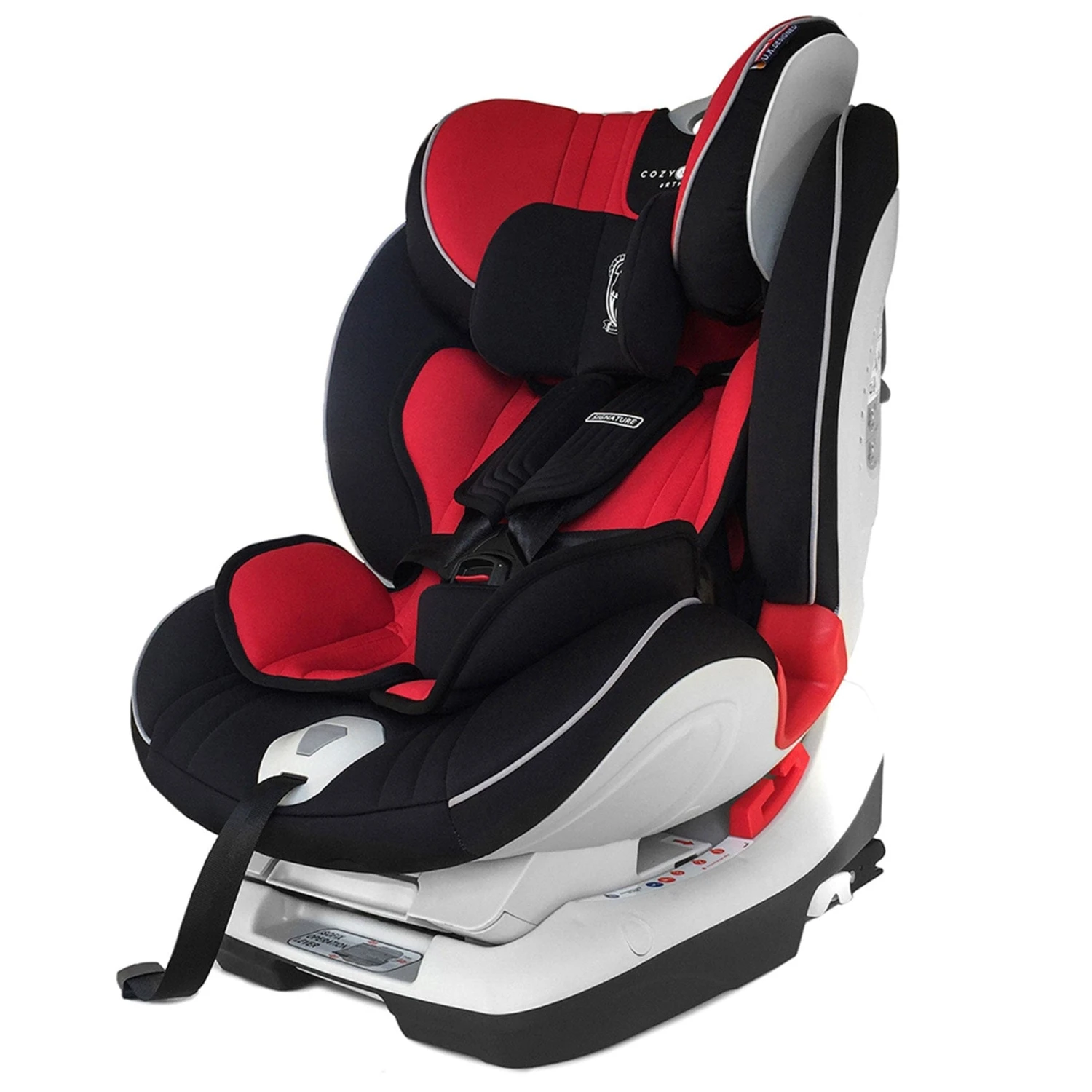 The Cozy N Safe Arthur Car Seat – Red is the only car seat you’ll need to buy, this seat means your little one can ride rear-facing to 18kg and then forward facing from 9kg.Â