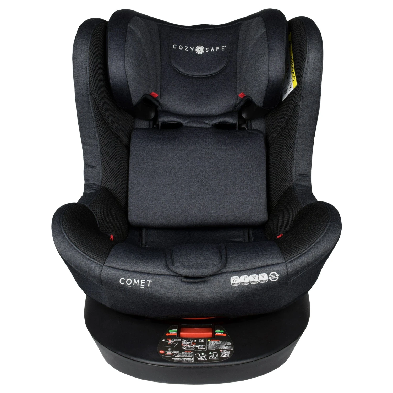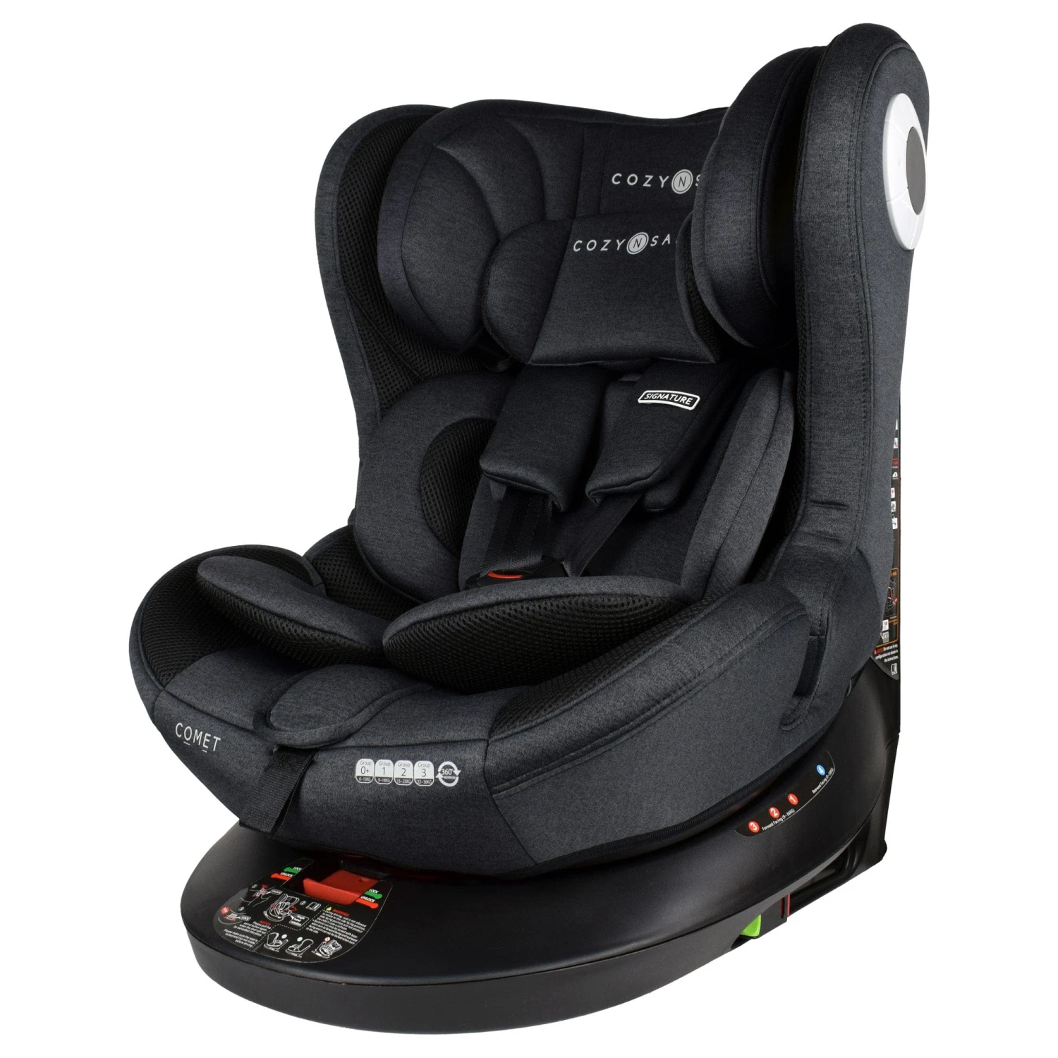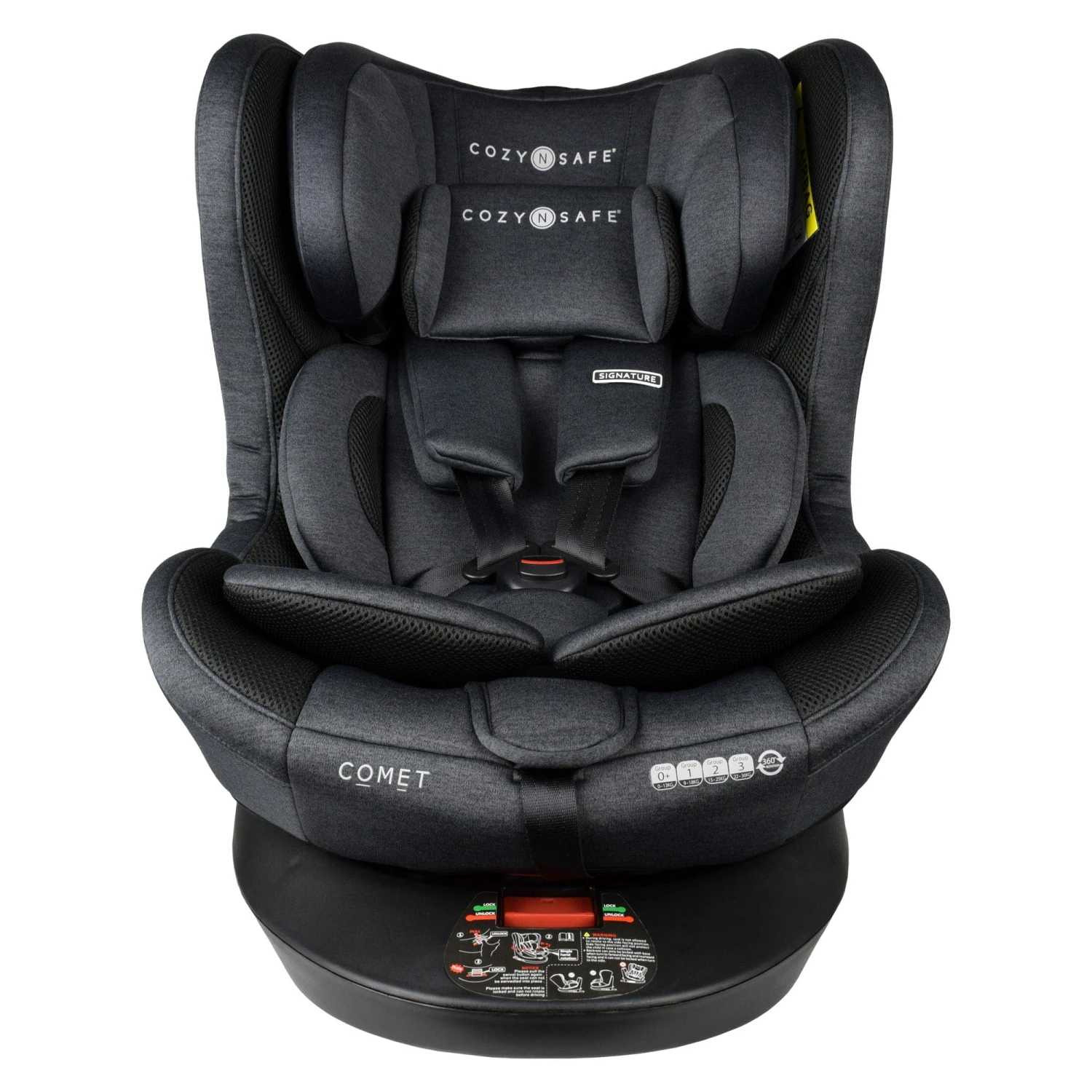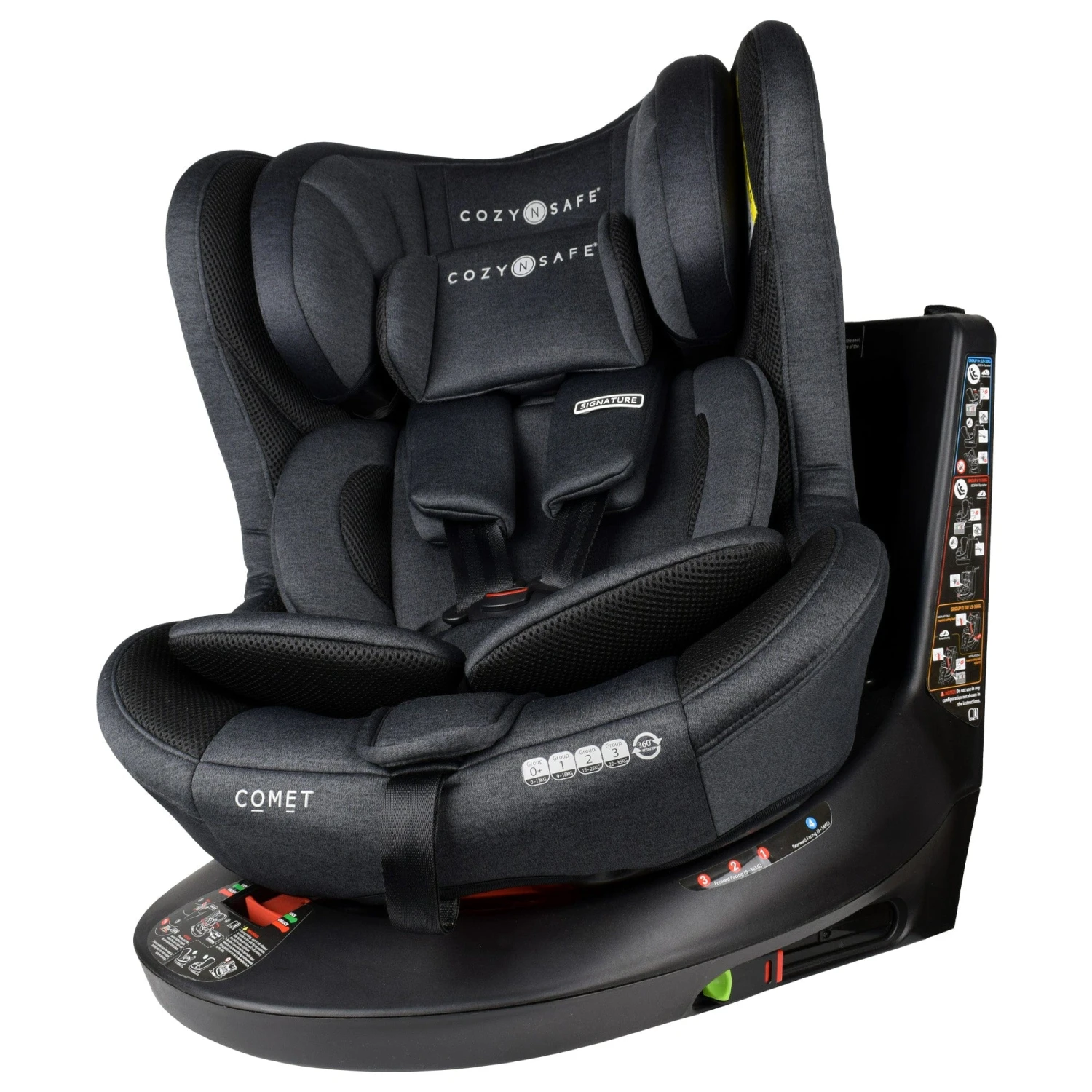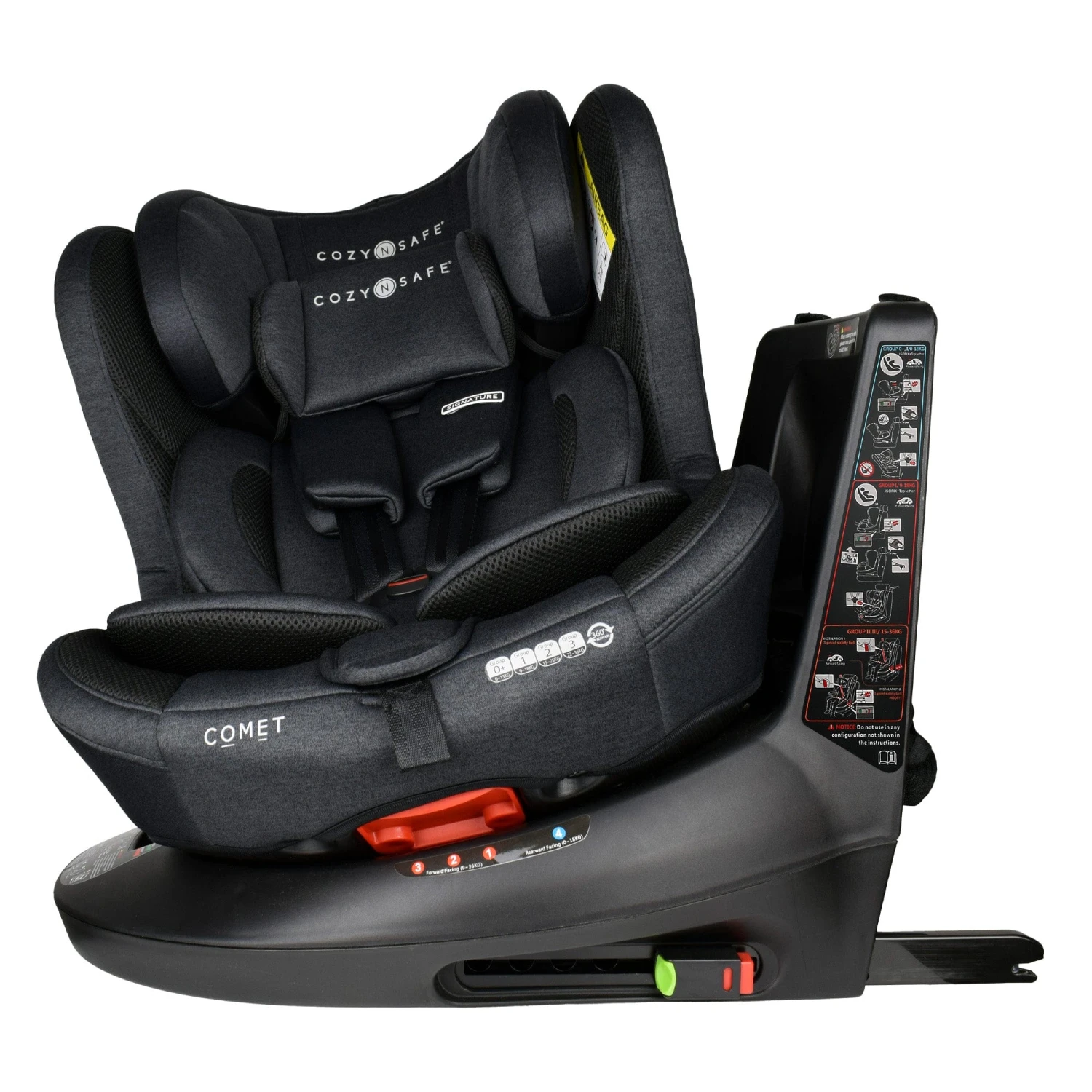 The Cozy N Safe Comet 360° – Graphite is the perfect blend of functionality and style. This one-of-a-kind infant seat offers uninterrupted access to your child without the hassle of unhooking the top tether. The top tether is attached to the base allowing you to spin the car seat a full 360° with the pull of a lever.
