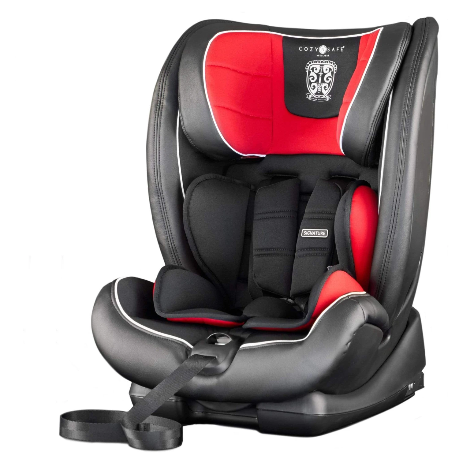 The Cozy N Safe Excalibur Group 1/2/3 Car Seat in Black and Red is the ultimate way for your little one to travel in style without compromising on comfort and safety. Â