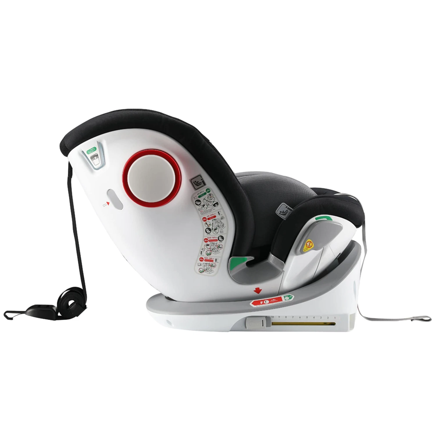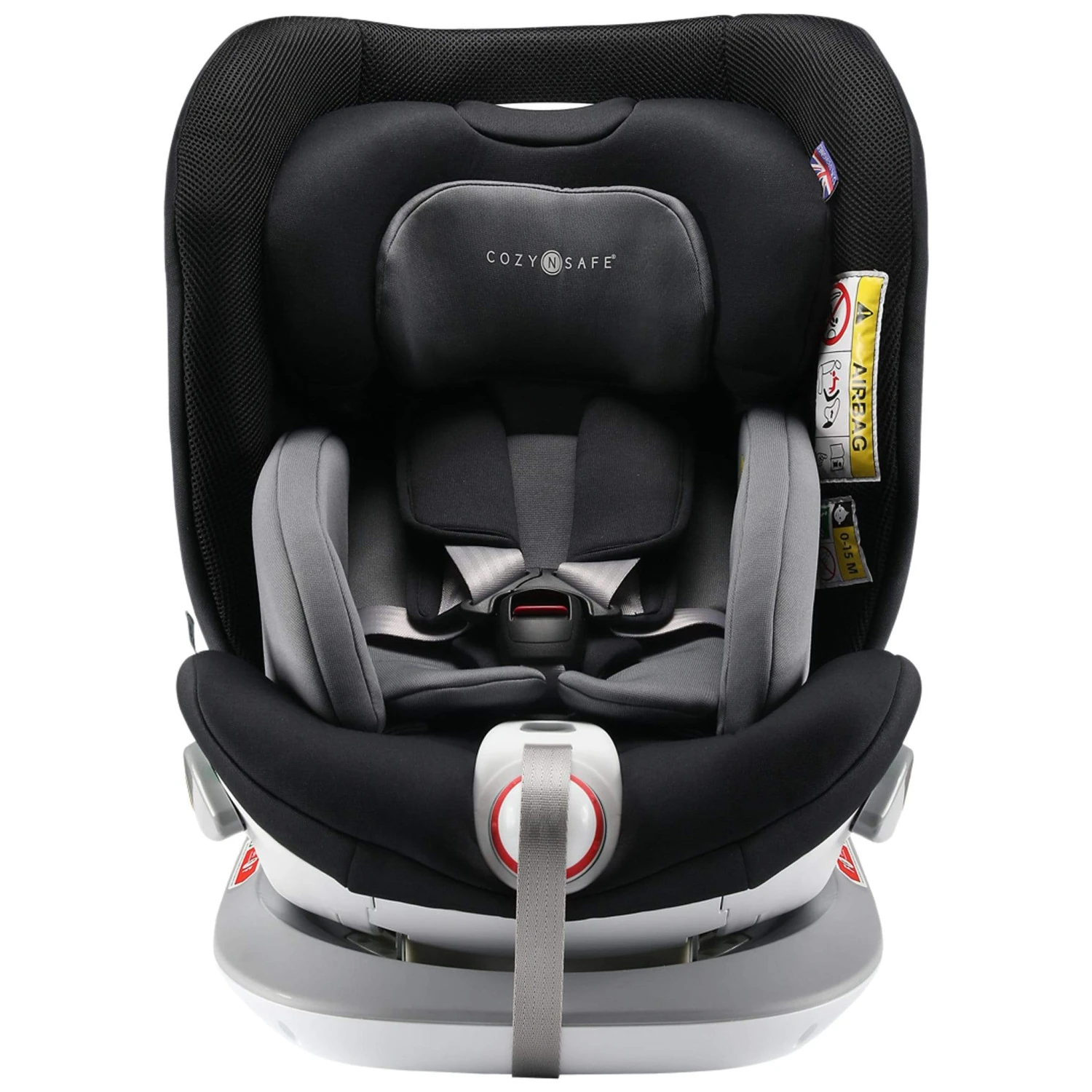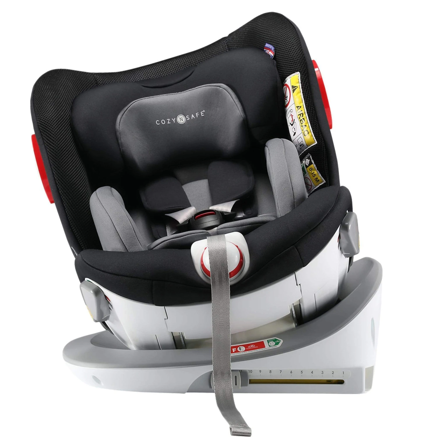 - Fitted using Isofix, top tether and/or 3 point seat belt installation
