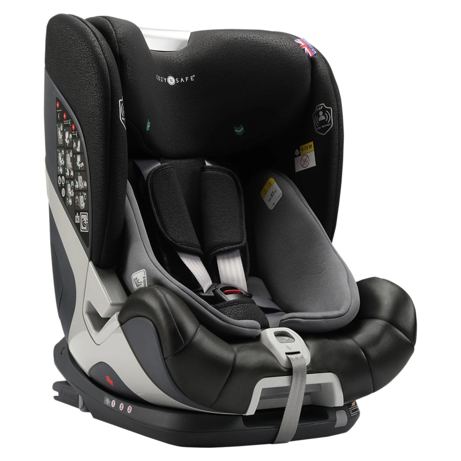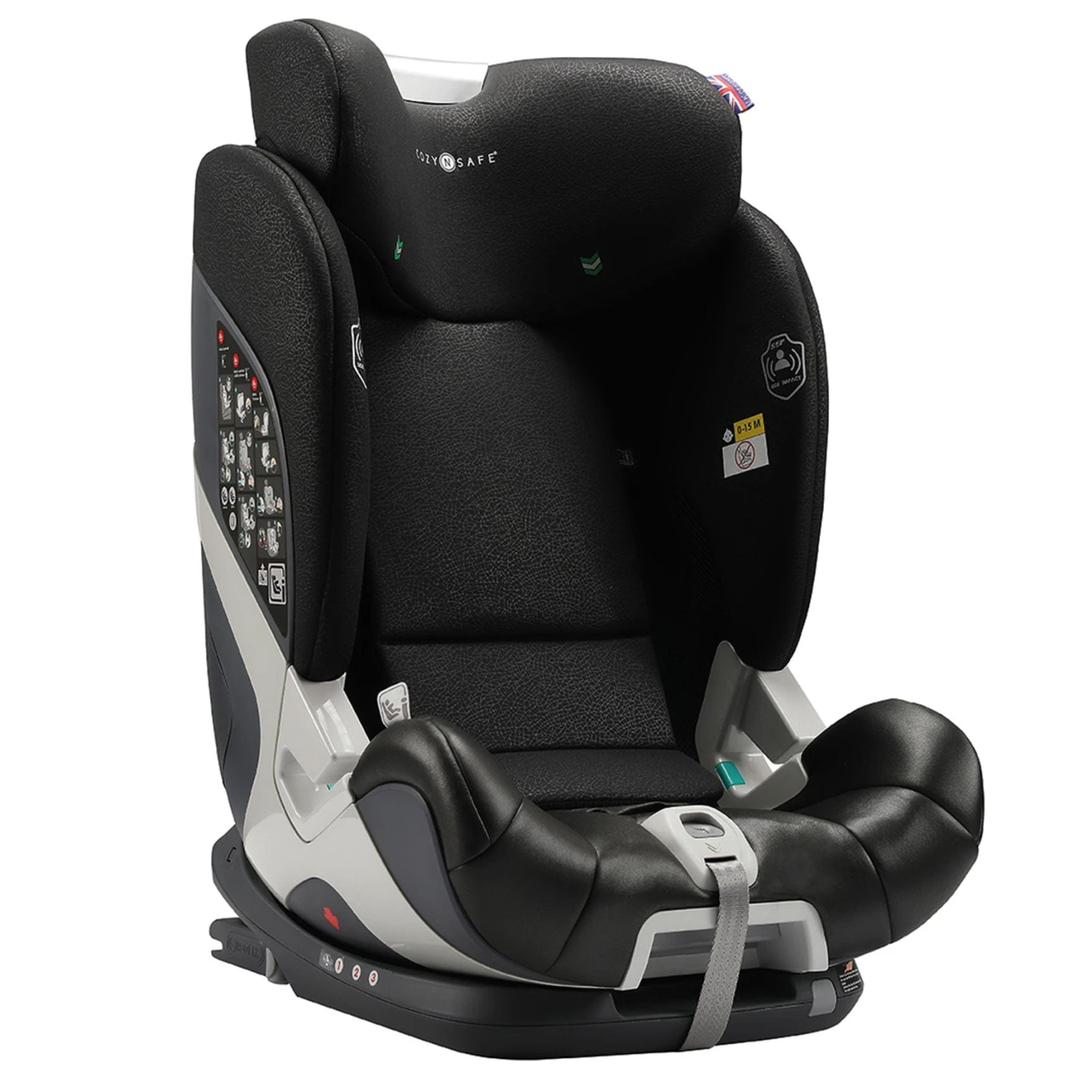 The Cozy N Safe Tristan i-Size Car Seat – Black/Grey is a forward-facing car seat that meets the ECE R129/02 regulations. This car seat can be fitted with ISOFIX attachments and the top tether, this has been made easier with the clear ISOFIX indicators and guides.