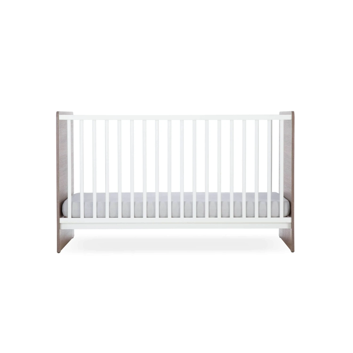 The CuddleCo Enzo Cotbed – Truffle Oak/White uses a neutral colour palette of cool white and truffle oak wood to provide you with a simple and understated style, meaning this furniture will match and complement any nursery interior design style. These furniture pieces have black metal handles for a sleek finish.Â