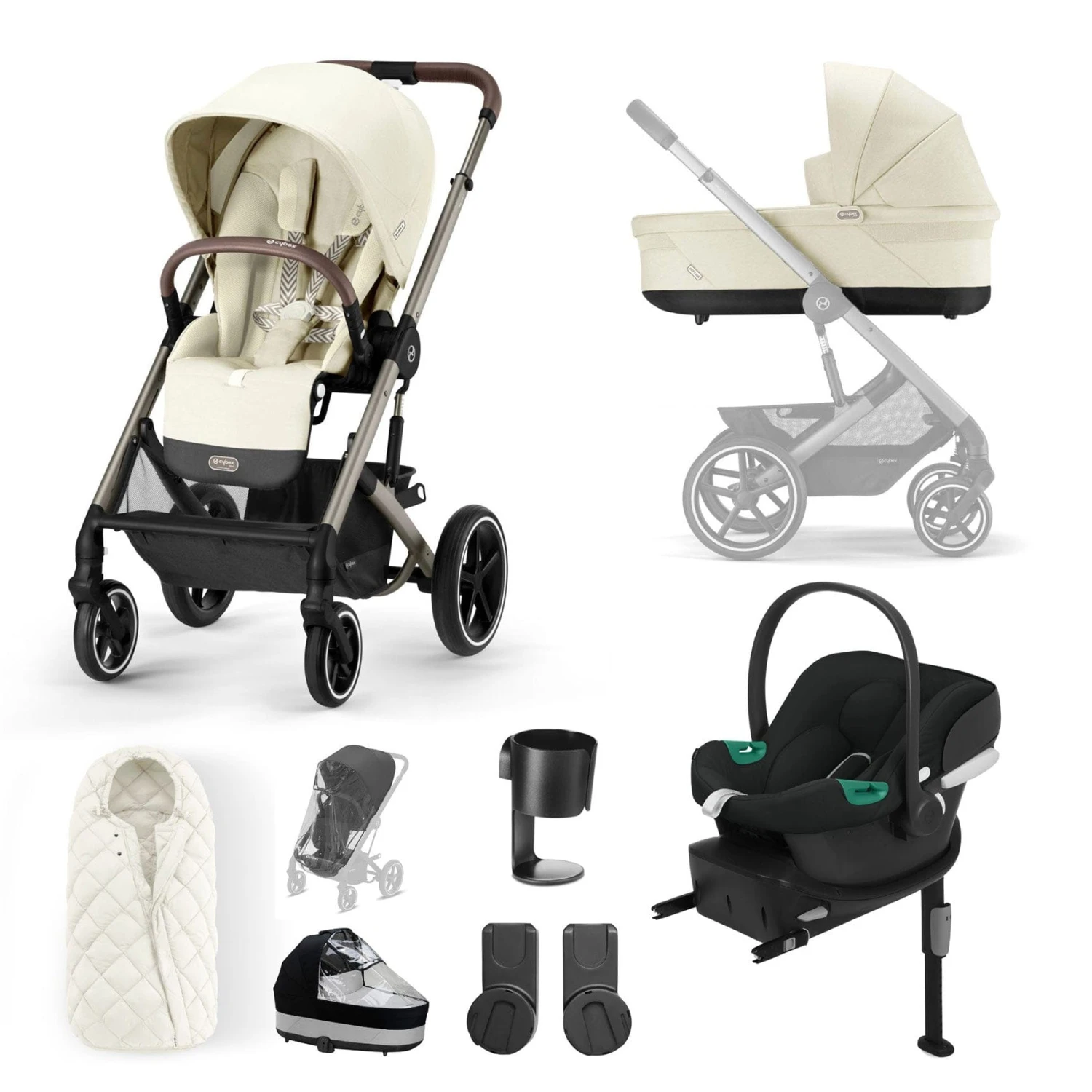 The Cybex Balios S Lux Comfort Bundle in Taupe/Seashell Beige is made for the city! The Balios bundles have everything you need from birth until your little one is 4 years old. This Comfort bundle has the Balios S Lux Pushchair, the Cot S Lux, Aton B Car Seat & Base One, Car Seat Adapters, a Cup Holder, Cot Raincover, Pushchair Raincover, and a Snogga Footmuff.Â