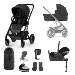 The Cybex Balios S Lux Luxury Bundle in Black/Moon Black is made for the city! The Balios bundles have everything you need from birth until your little one is 4 years old. This Luxury bundle has the Balios S Lux Pushchair, the Cot S Lux, Cloud T & Base, Car Seat Adapters, a Cup Holder, Cot Raincover, Pushchair Raincover, and a Snogga Footmuff.