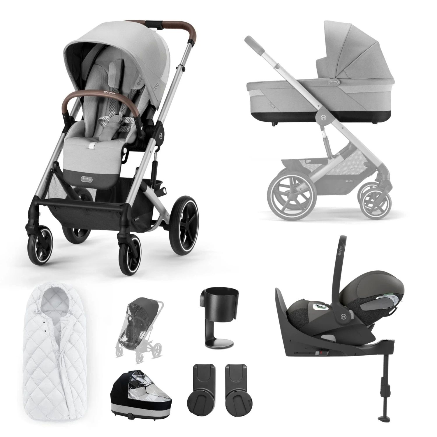 The Cybex Balios S Lux Luxury Bundle in Silver/Lava Grey is made for the city! The Balios bundles have everything you need from birth until your little one is 4 years old. This Luxury bundle has the Balios S Lux Pushchair, the Cot S Lux, Cloud T & Base, Car Seat Adapters, a Cup Holder, Cot Raincover, Pushchair Raincover, and a Snogga Footmuff.Â