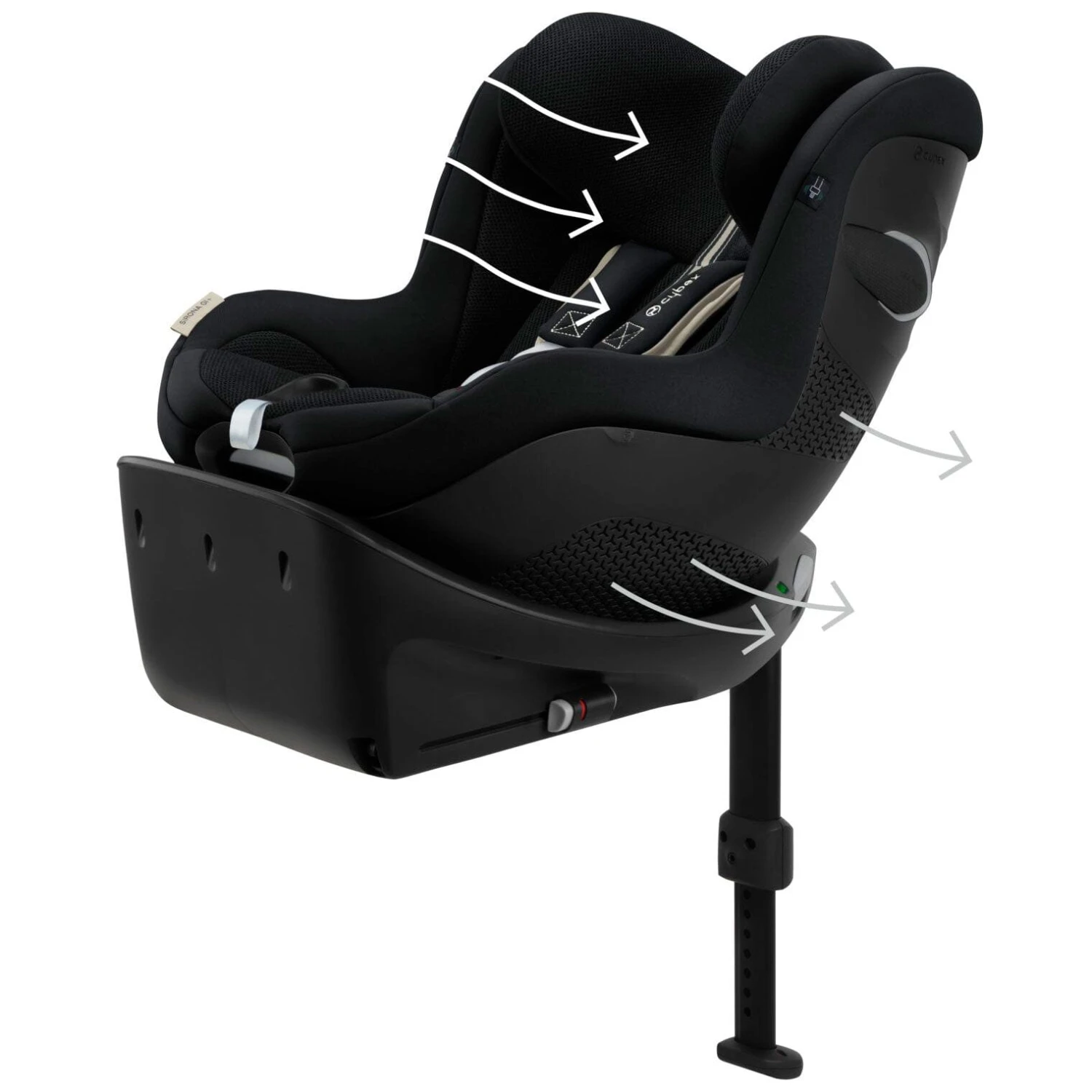 Experience the ultimate comfort with the Sirona Gi i-Size. Its all-round air ventilation system ensures a cool and pleasant journey, even during warmer seasons. The Plus version offers mesh fabrics, providing superior breathability, so your child stays comfortable throughout the ride.