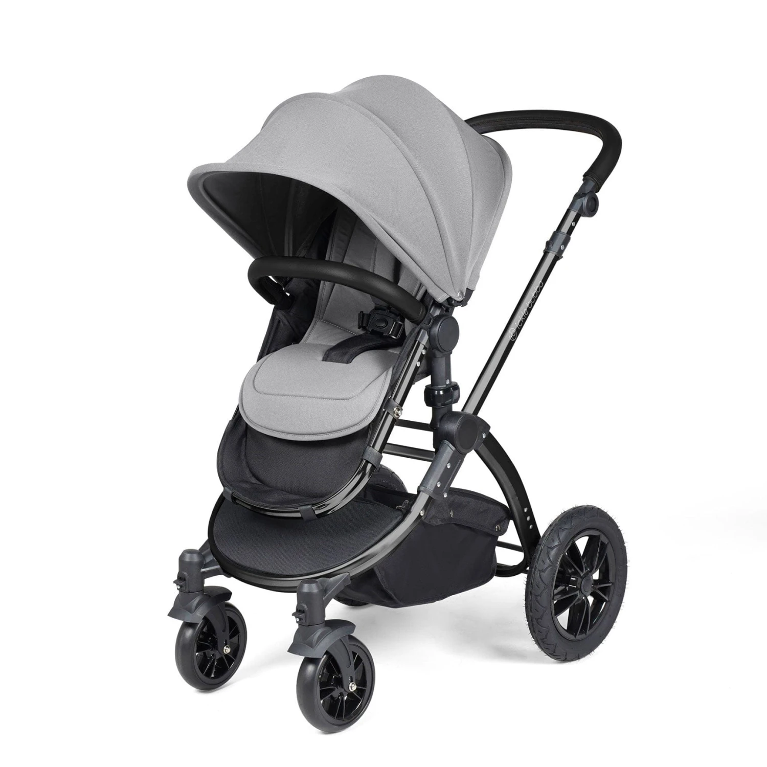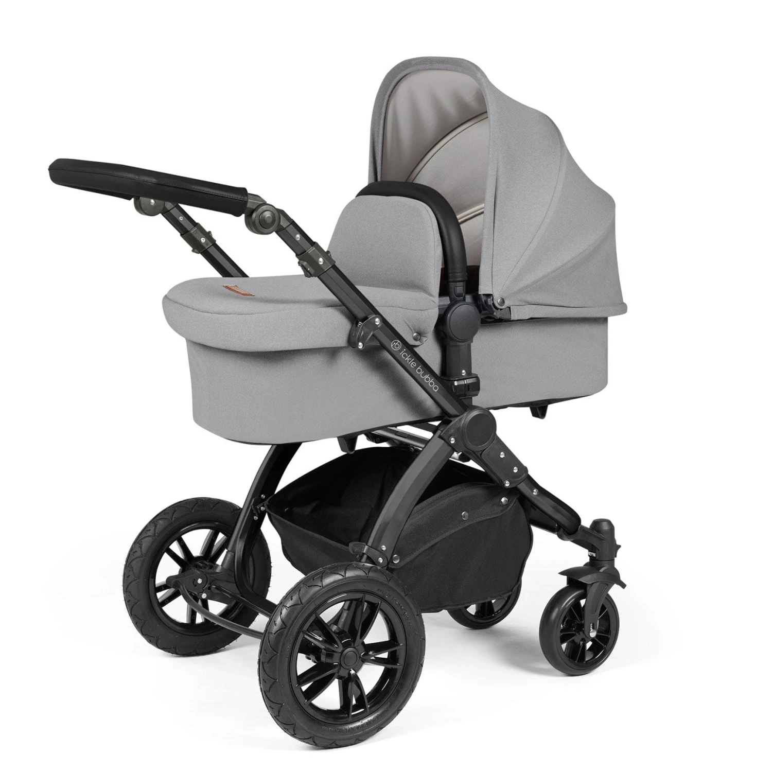 The Ickle Bubba Stomp Luxe 2-in-1 Plus Pushchair & Carrycot in Black/Pearl Grey/Black is everything you need for your journeys with your new little one, this stroller can handle all terrains and with the car sunshades, foot warmer and rain cover this bundle is ready for any weather!