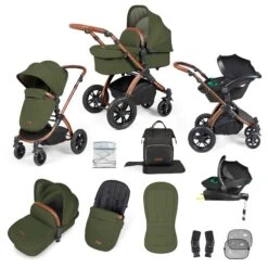 The Ickle Bubba Stomp Luxe All-in-One Travel System with Isofix Base – Bronze/Midnight/Tan is everything you need for your journeys with your new little one, this stroller can handle all terrains and with the car sunshades, foot warmer and rain cover this bundle is ready for any weather!