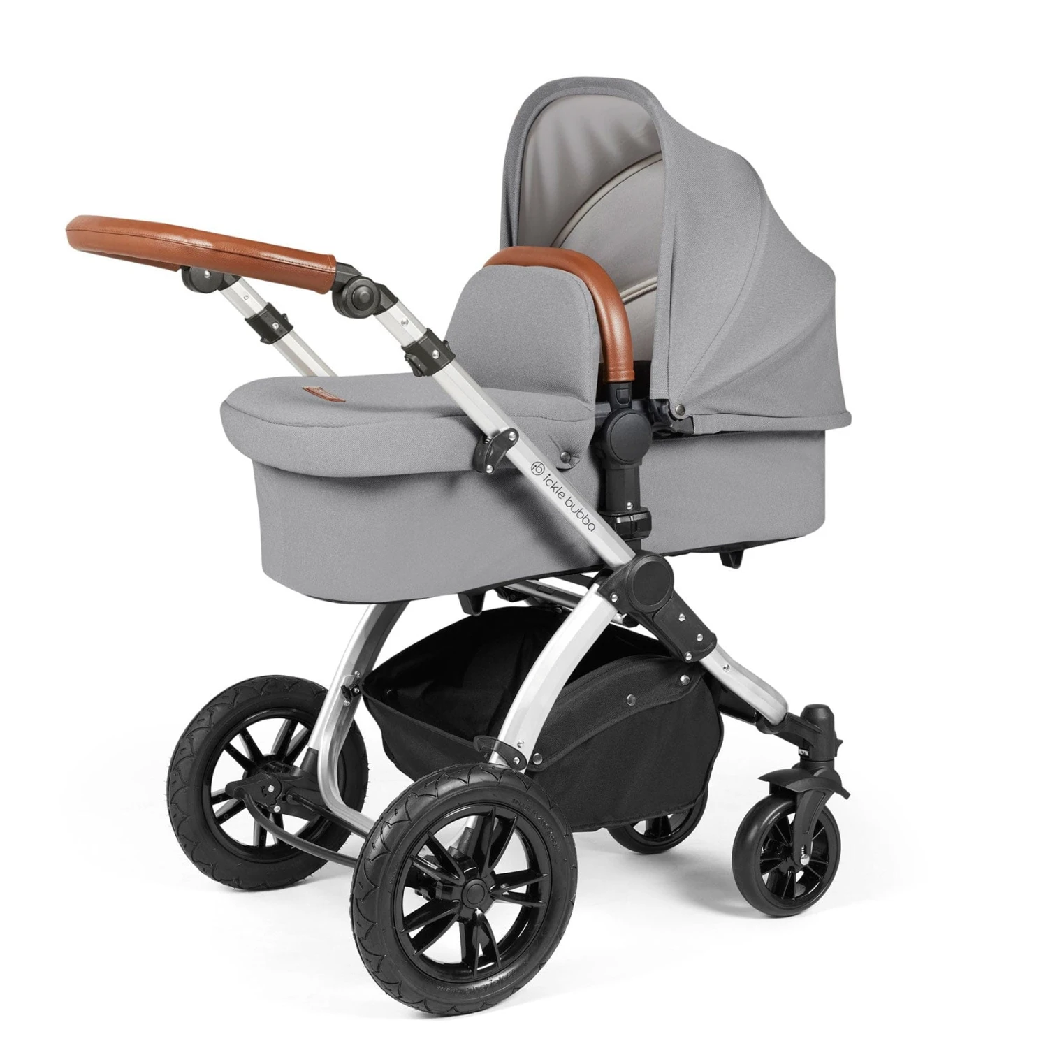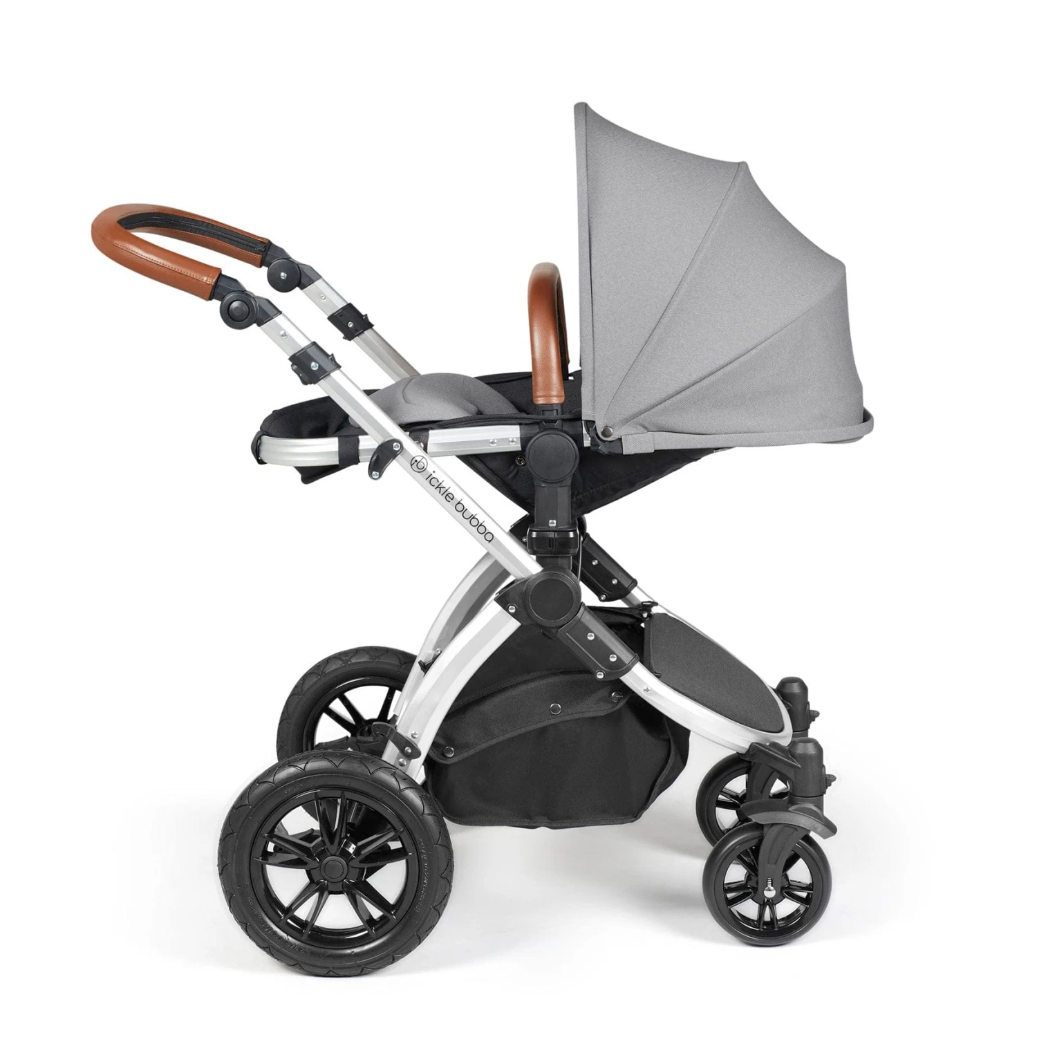 The Ickle Bubba Stomp Luxe All-in-One Travel System with Isofix Base – Silver/Pearl Grey/Tan is everything you need for your journeys with your new little one, this stroller can handle all terrains and with the car sunshades, foot warmer and rain cover this bundle is ready for any weather!
