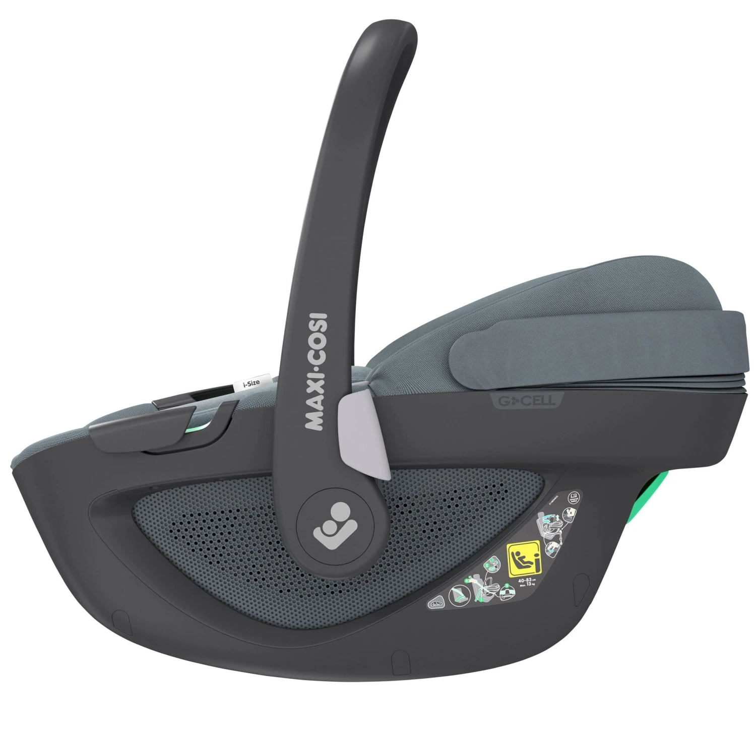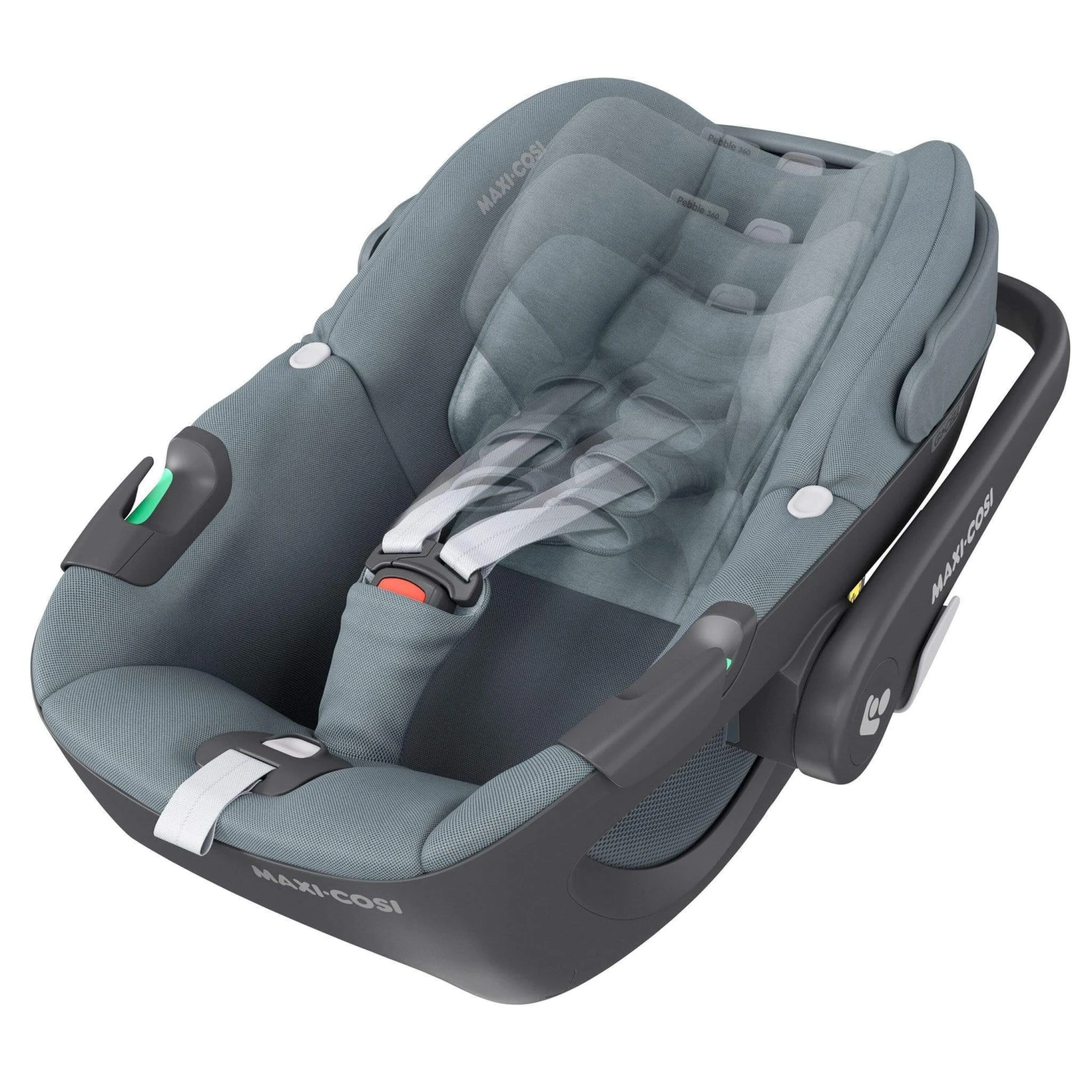 Discover the Maxi Cosi Pebble 360 in Essential Grey! The Pebble 360 is a 360-degree, swivelling car seat suitable from birth up to approximately 15 months, so you can pop your newest addition in it the minute you leave the hospital! It complies with the highest i-Size safety standards, boasting G-Cell Side Impact Protection which protects your baby in the event of a side-on collision, giving you peace of mind that your little one is safe and secure.Â