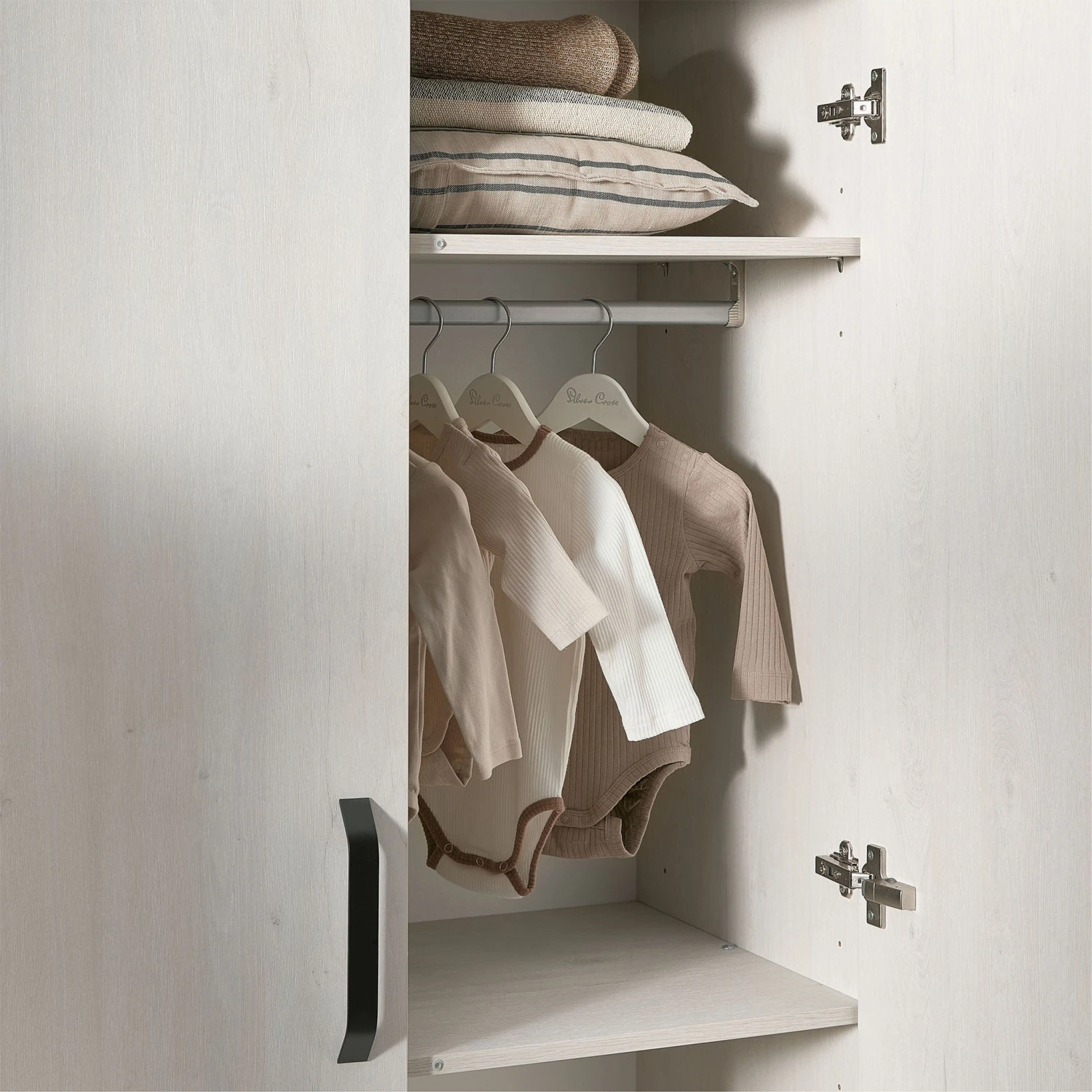 The Alnmouth wardrobe has a great amount of storage space, as it comes with two adjustable hanging rails and an overhead shelf. Perfect for your little one as they grow.