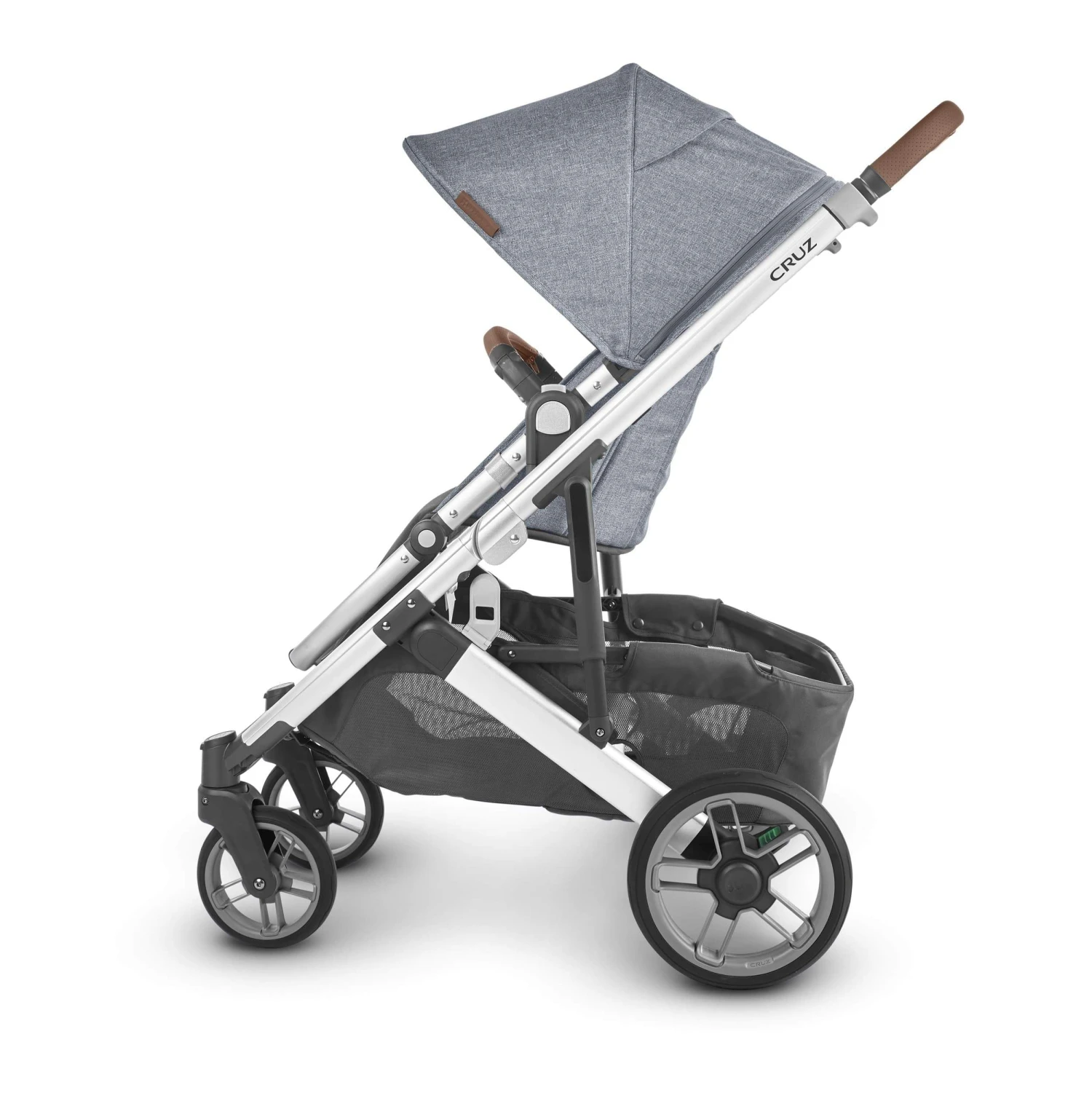 The Cruz V2 is also available as a from birth pram. Simply attach the Bassinet accessory (sold separately) and your baby can lie completely flat in a safe, comfy and cosy environment. Uppababy also offer a Bassinet stand (sold separately) that will allow you to transform the Cruz V2 bassinet into an overnight crib for baby, so you don’t need to worry about purchasing a travel cot for nights away with your newborn.