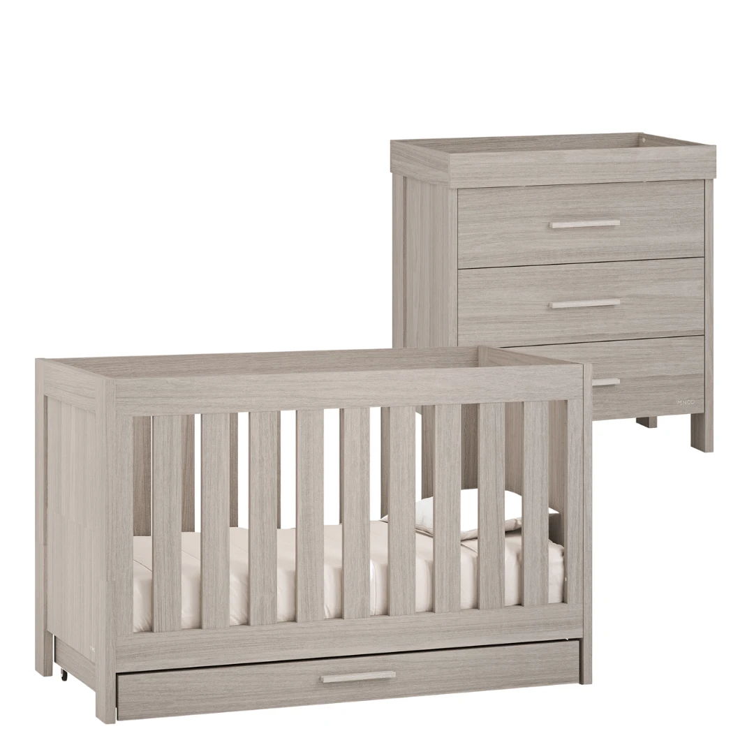 The Venicci Forenzo 2 Piece Dresser Roomset – Nordic White uses a wooden design for a peaceful and cosy feel. This room set was designed with you in mind too, not just baby. It supports their healthy development as well as your back! The lack of unnecessary shelves in this furniture means less dust around baby and less for you to clean!