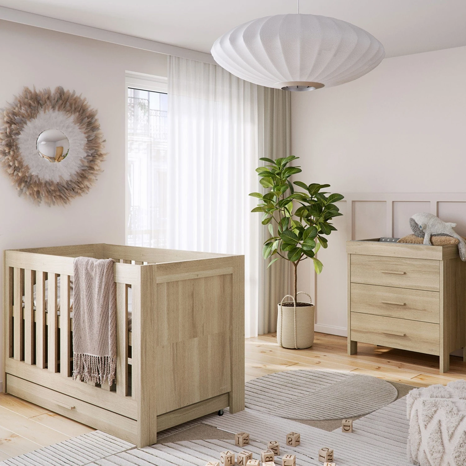 This wooden design is universal and versatile, and can perfectly fit into any nursery style. The Honey Oak colour uses delicate accents of yellow and warm orange tones to nicely match any nursery decor.Â