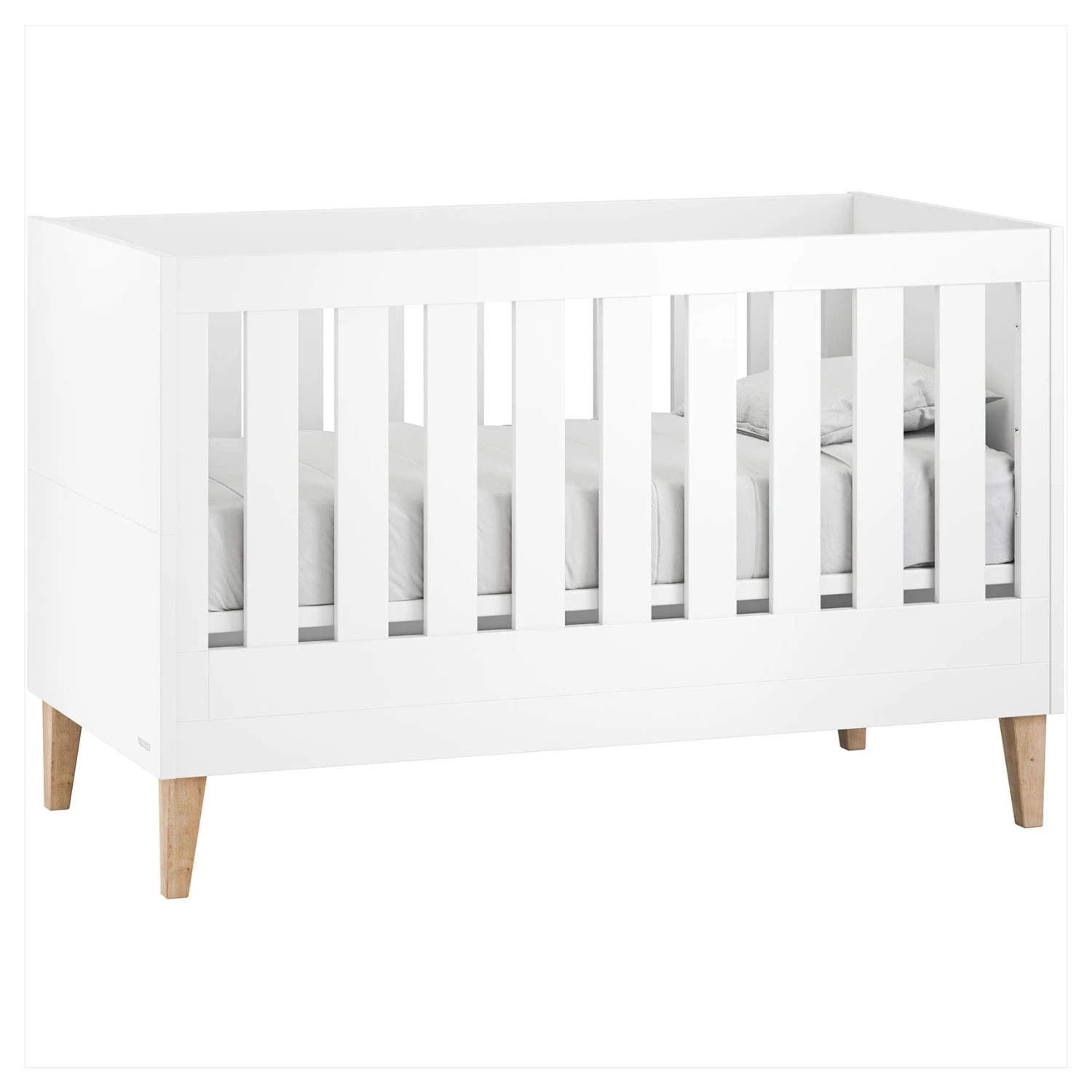 The Cot Bed is designed so that it is able to be changed and adapted as baby grows, there are three base heights then into a toddler bed when they are old enough. This is designed to save parents’ backs who bend down a lot to their babies, especially in the early days. The frame is made for proper ventilation for your little one.Â