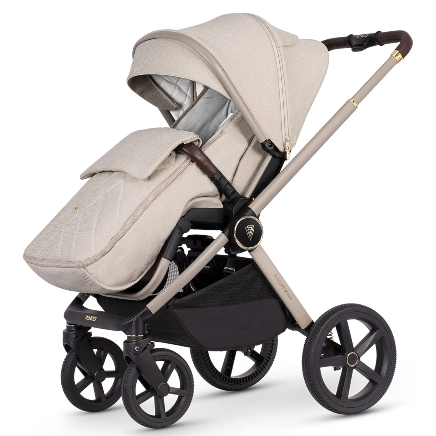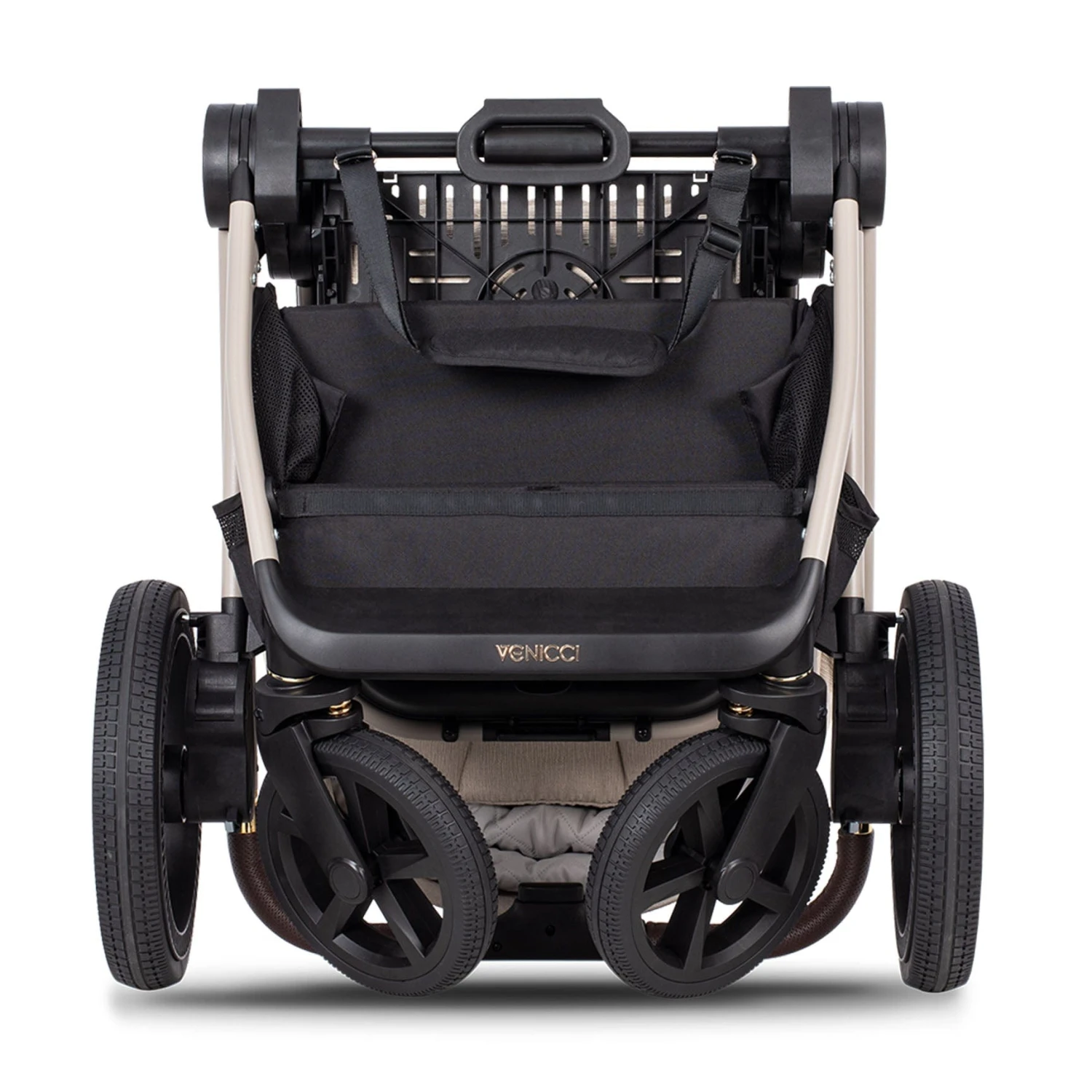 Let baby ride in style with the Venicci Tinum Upline 2in1 Bundle – Stone Beige. This elegant and compact stroller bundle uses many helpful features. The bundle includes Chassis, Seat Unit, Changing Bag, Footmuff, Raincover, Mosquito Net and an Additional Backpack.